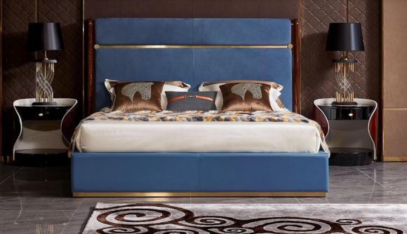 Unser Produkt ist vielseitig und kann auf Ihre individuellen Bedürfnisse zugeschnitten werden. Sie können uns direkt kontaktieren und wir bleiben immer in Kontakt! Das Bett hat die Maße 226 cm Länge, 210/195 cm Breite und 145,5 cm Höhe, mit einer Liegefläche von 180x200 cm. Die 2 Nachttische sind jeweils 63 cm lang, 45 cm breit und 66 cm hoch. Das Design ist in der Farbe wie abgebildet und besteht aus Holz, Edelstahl und Leder.