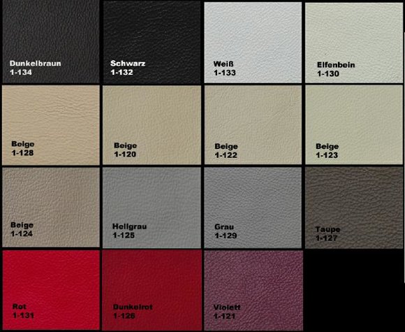 alle übrigen Lederbezüge aus farbgleichem Premium Kunstleder