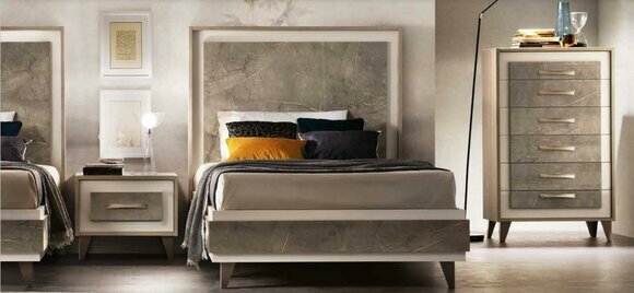 Italienische Möbel Designer Schlafzimmer Nachttische Bett 3tlg. Garnitur Betten