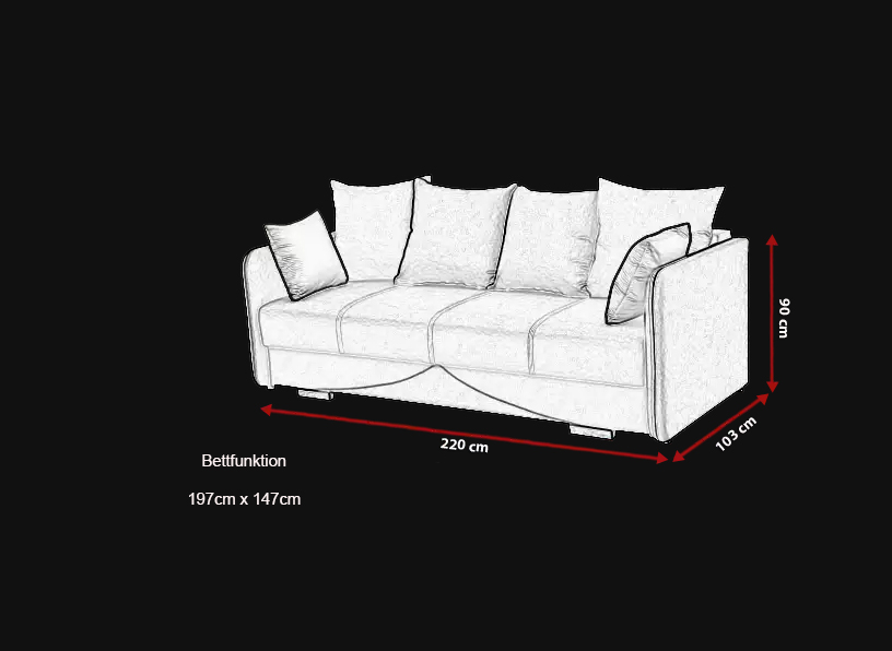 Entdecken Sie unser Schlafsofa Klappcouch, das als 3-Sitzer nicht nur ideal für Ihr Wohnzimmer ist, sondern auch eine praktische Schlaffunktion bietet. Dank des modernen Designs und der Möglichkeit zur freien Farb- und Materialwahl, lässt sich das Sofa perfekt in Ihre Einrichtung integrieren. Ausgestattet mit einem Bettkasten bietet es zusätzlichen Stauraum für Kissen und Decken.
